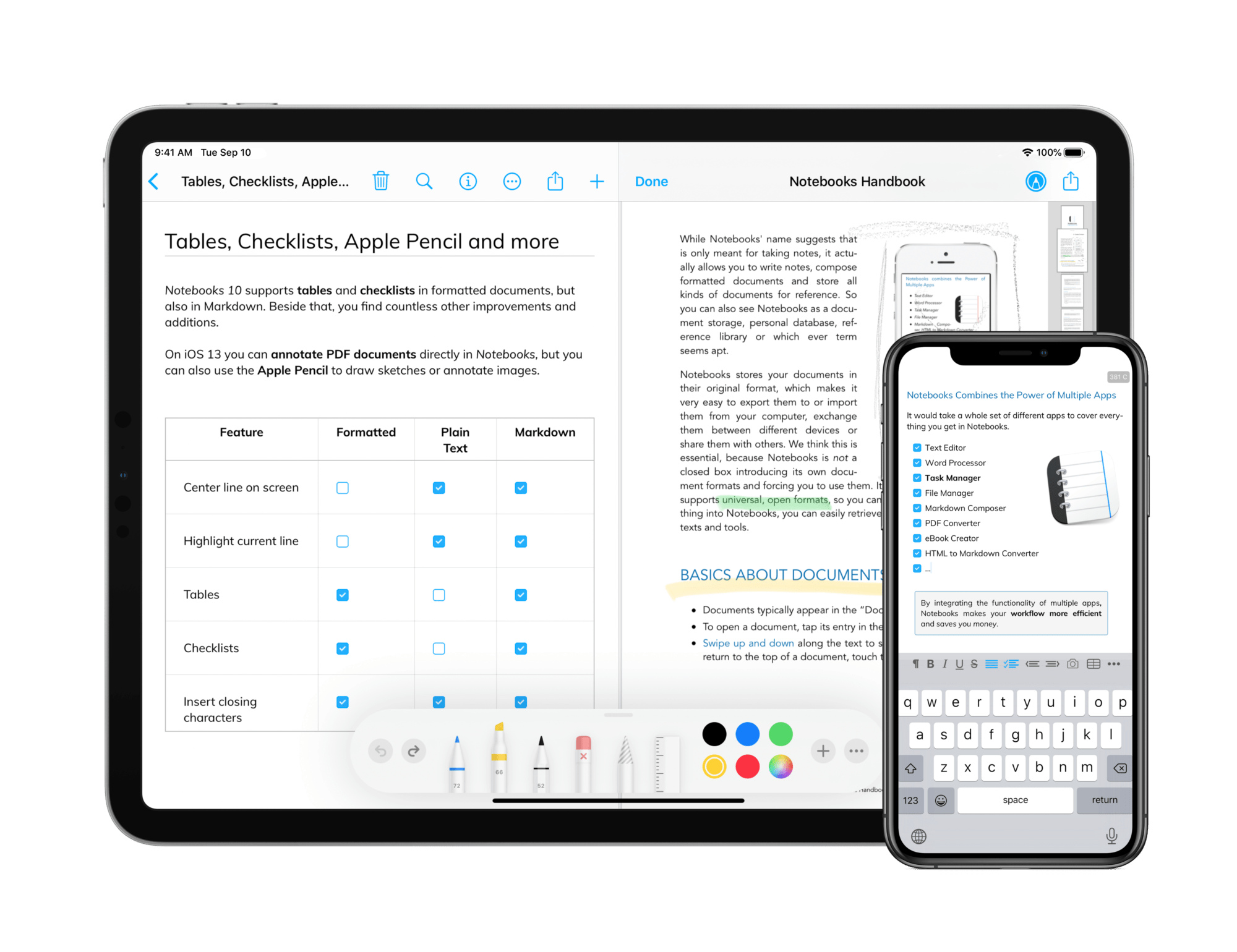Notebooks 10 is available on the App Store and requires iOS 12 or above.